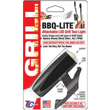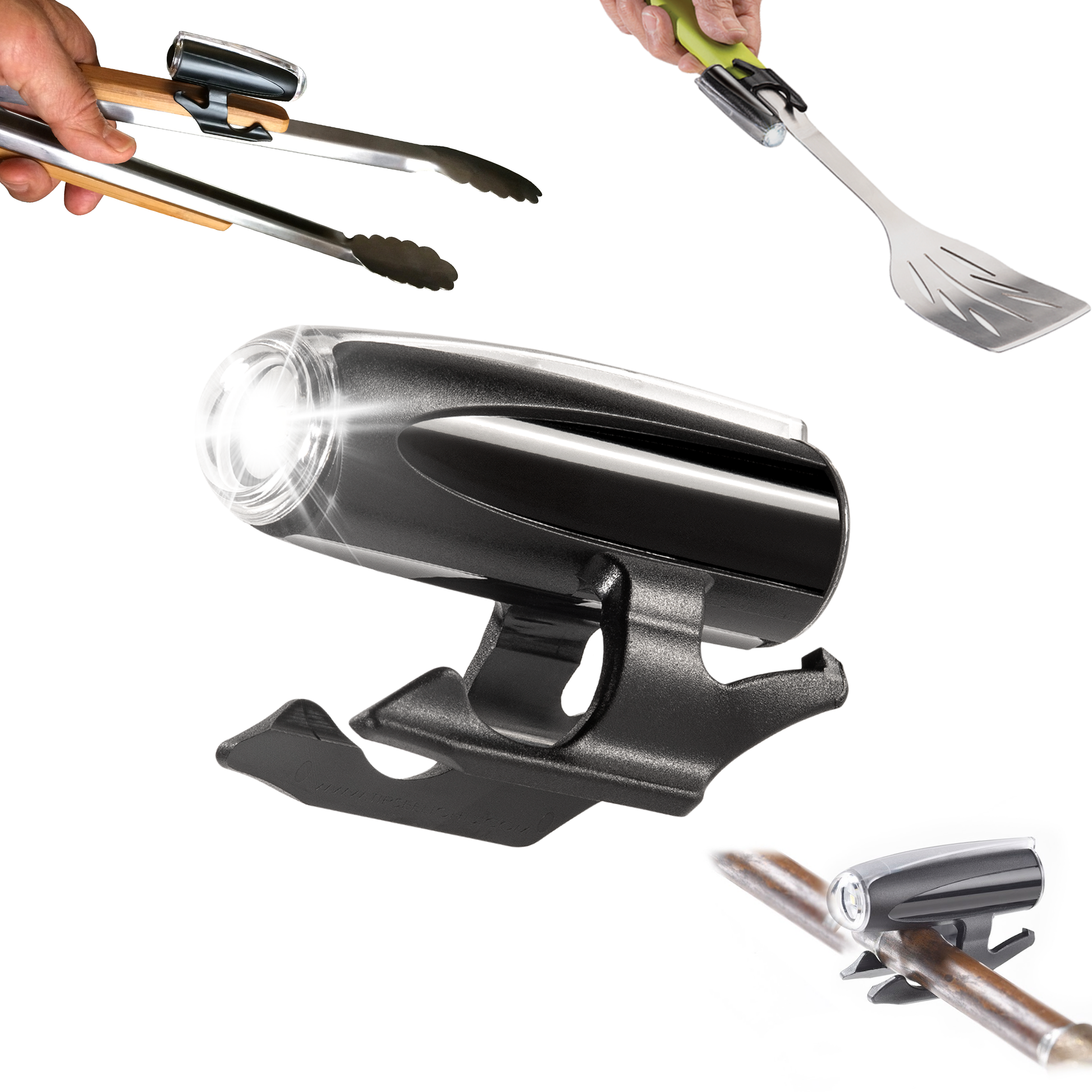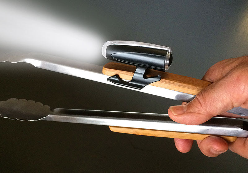 With a patented clip system, the TipSee Light Co BBQ Lite outdoor BBQ grill light is designed to snap or hook onto different shapes and diameters for grilling tools instead of just the grill like other grill lights. It can easily mount to BBQ tongs, a spatula, flipper, scraper or even your finger. Fits diameters 3/8” to 1” (9.6mm – 25.5mm)