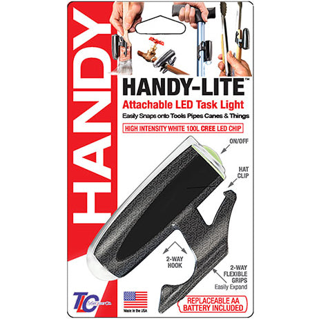 For jobs in dark, tight places, Handy-Lite can snap or hang on and shine clean, bright light where you need to work.